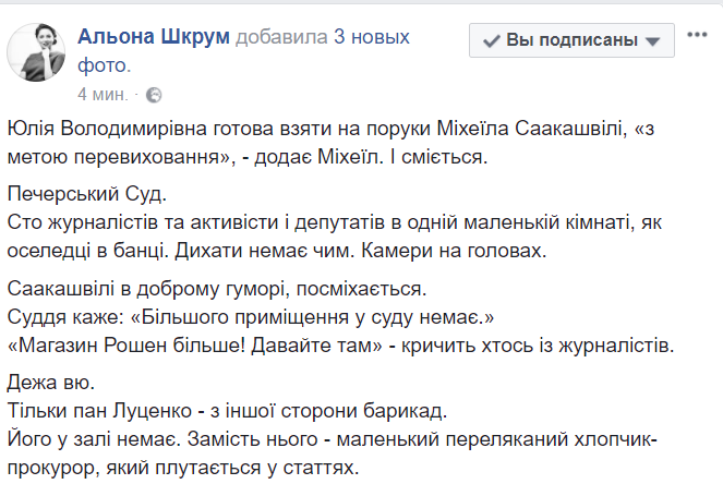 13:58  Тимошенко готова взять Михо на поруки, написала в Facebook народный депутат Алена Шкрум.