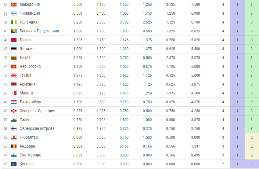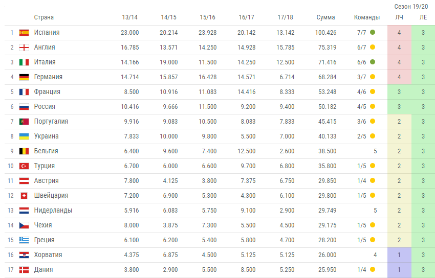 Итак, вот полный рейтинг УЕФА