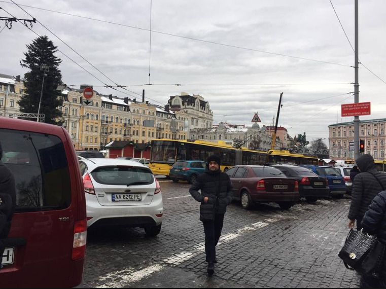 Во вторник, 12 декабря, в центре Киева из-за припаркованной на проезжей части машины, возник транспортный коллапс. Об этом в Facebook сообщает журналист Алена Яхно.