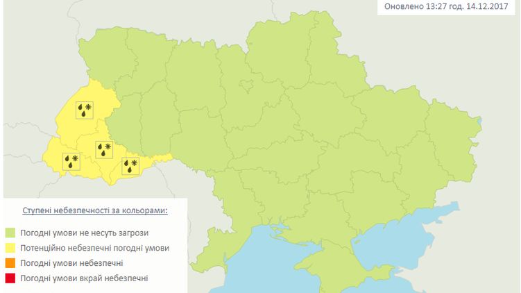 Неблагоприятные погодные условия ожидаются во Львовской, Ивано-Франковской, Черновицкой областях и на Закарпатье.