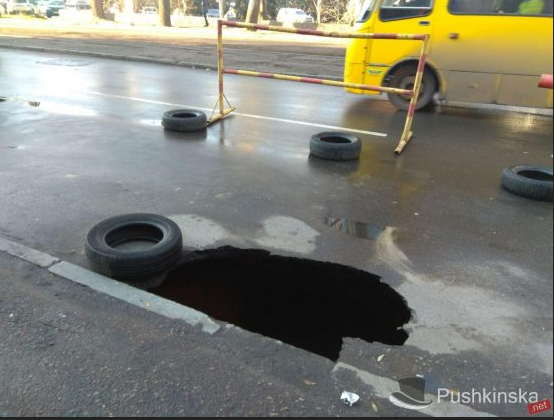 В Одессе посреди проезжей части провалился асфальт на 4 метра