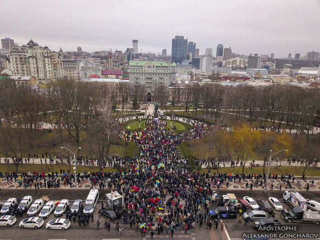 В Киеве "Марш за импичмент" сторонников Михаила Саакашвили сняли при помощи дрона. Об этом сообщает "Апостроф".