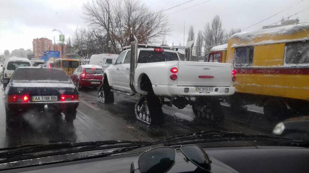 15:50  В Киеве заметили оригинальный внедорожник на гусеницах. Суперпроходимость - такому снегопад не страшен.