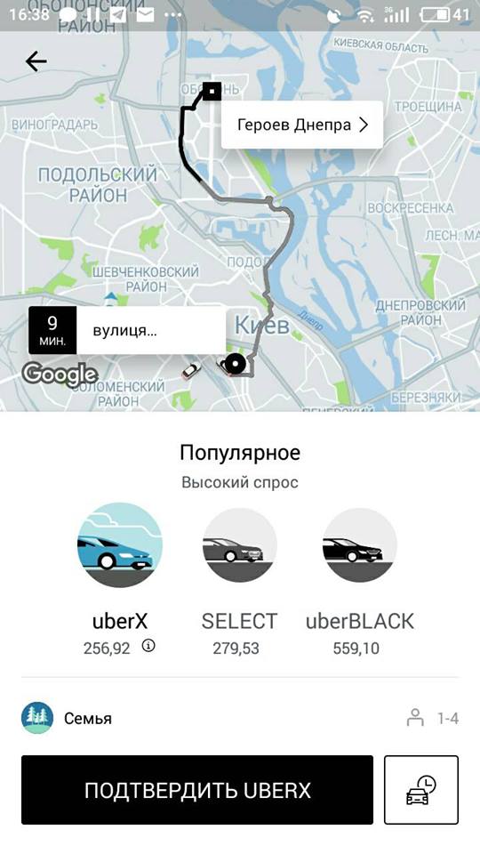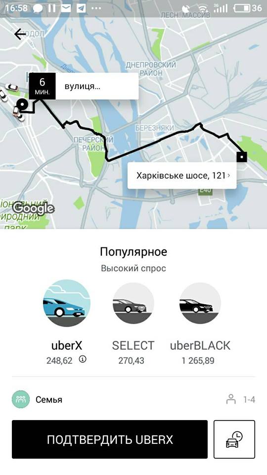 17:45  За поездку в такси на Харьковский массив с Владимирской - 248 гривен через Uber.