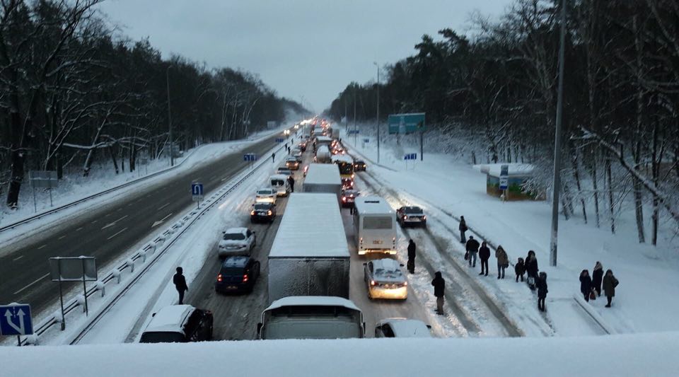 9:31  На главных артериях, которые ведут в Киев - тотальные пробки. Хорошо себя чувствует пожалуй только Столичное шоссе. А вот на Житомирской трассе настоящий коллапс: люди бросают машины и идут пешком.