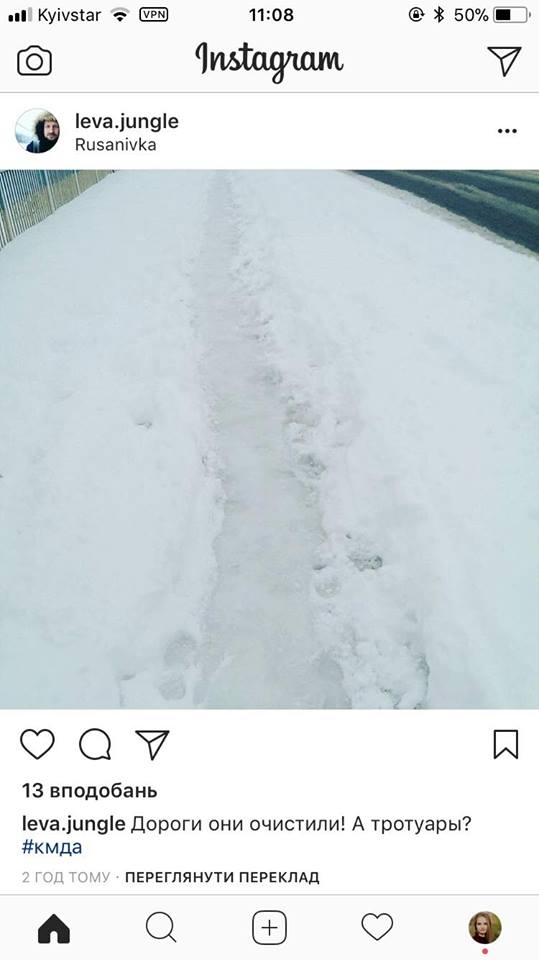 11:15  Тротуары никто не убирает в принципе. Киевская Русановка.