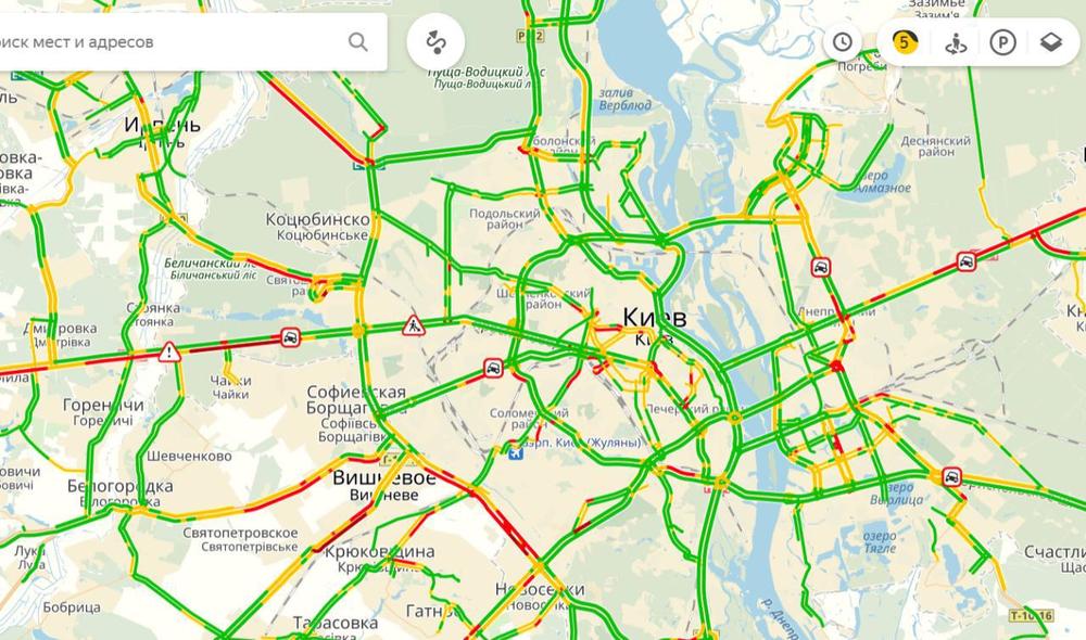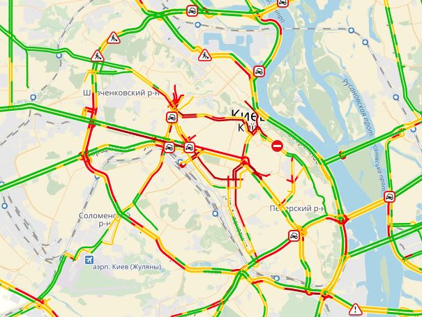 16:55  Пробки в Киеве на это время. Девять баллов - все без изменений. Прямо сейчас в Киеве 13 дорожно-транспортных происшествий.