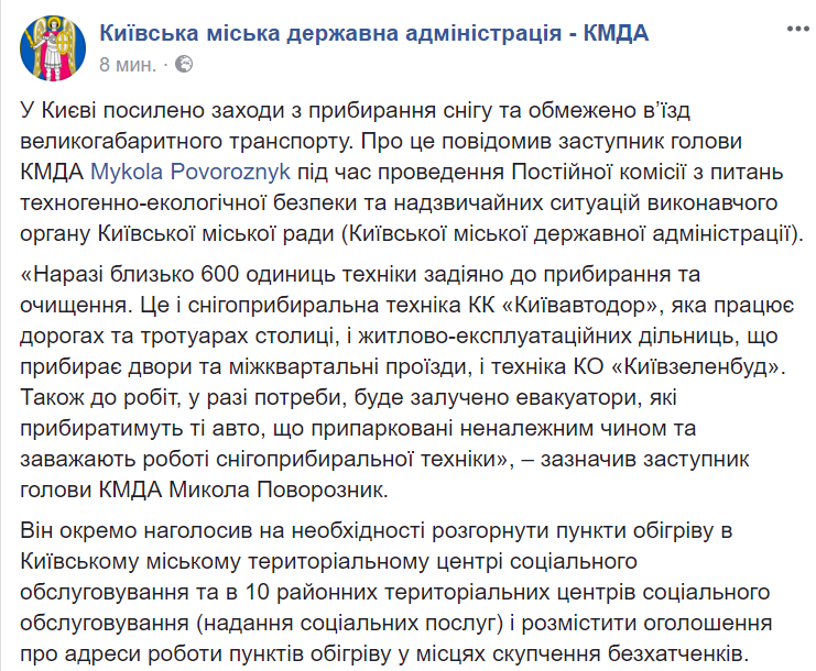 16:49  В киевской мэрии пугают эвакуаторами водителей, чьи машины мешают работе снегоочистителей.