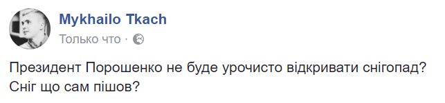 19:24  В соцсетях шутят, что президент Порошенко забыл открыть снегопад и тот пошел сам.