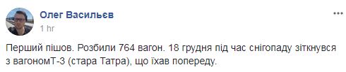 "Первый пошел. Разбили 764 вагон. 18 декабря во время снегопада столкнулся с вагоном Т-3 (старая Татра), который ехал впереди", - говорится в сообщении.