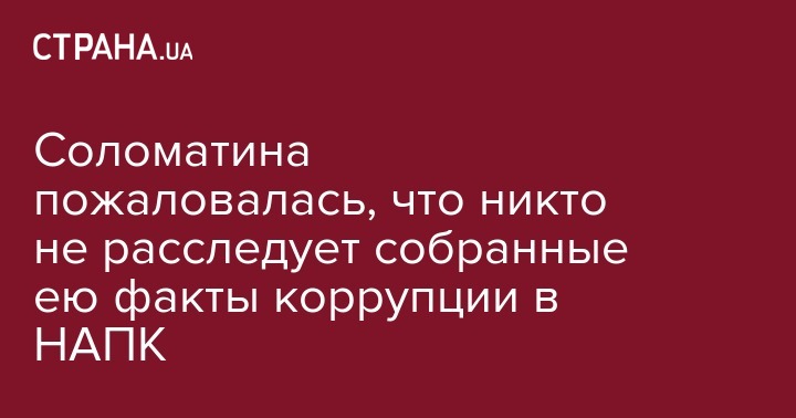 По словам Соломатиной, тем временем глава НАПК Наталья Корчак прячет документацию, которая доказывает коррупцию в ведомстве. Так, по приказу Корчак открыли служебный сейф еще одного обличителя в агентстве, заведующей сектором внутреннего аудита НАПК Оксаны Дивнич. Оттуда неизвестно куда забрали все документы.