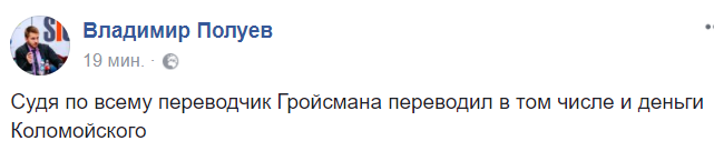"Судя по всему переводчик Гройсмана переводил в том числе и деньги Коломойского", - журналист Владимир Полуев связал историю Коломойского с задержанием "агента ФСБ" из аппарата Гройсмана.