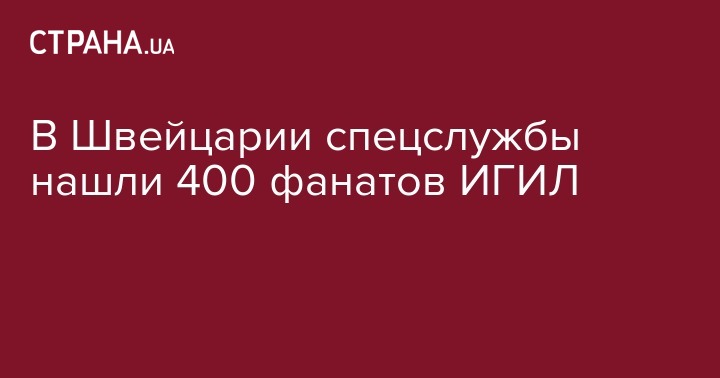 Спецслужбы Швейцарии заявили об обнаружении около 400 человек, которые симпатизировали террористам ИГИЛ и имели тесные интернет-контакты с ними. Также спецслужбы опубликовали информацию о 70 швейцарцев, воюющих в составе террористической группировки ИГИЛ. Об этом сообщила Служба разведки Конфедерации (СРК), передает ТАСС.