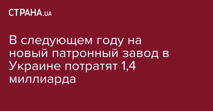 На создание в Украине нового патронного завода в 2018 году заложены 1,4 млрд гривен.