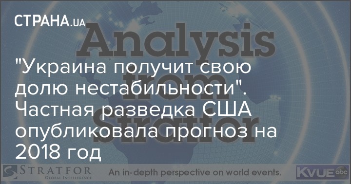 Влиятельная американская частная разведывательно-аналитическая компания Stratfor, которую также называют "теневым ЦРУ", опубликовала свой прогноз развития ситуации в России и Украины на 2018 год. Его приводит издание "Апостроф".