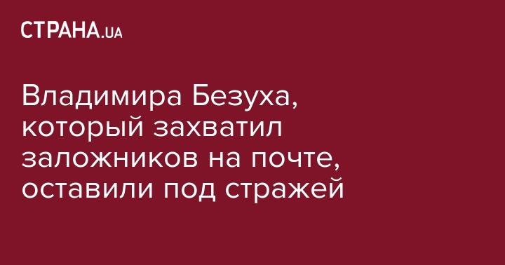 Апелляционный суд Харьковской области оставил под стражей Владимира Безуха, который 30 декабря захватил отделение "Укрпочты" в Харькове вместе с находящимися там людьми.