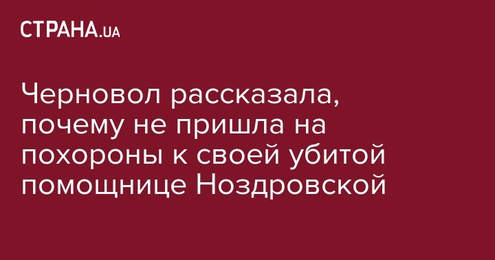Народный депутат Татьяна Черновол не пришла на похороны к своей помощнице на общественных началах, правозащитнице Ирине Ноздровской по двум личным причинам.