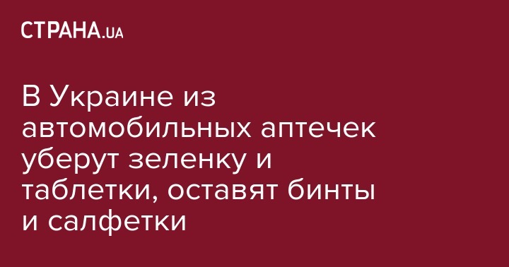 Из аптечек украинских автомобилистов собираются убрать зеленку и таблетки. Соответствующие изменения готовит Минздрав. Об этом сообщает УНИАН.