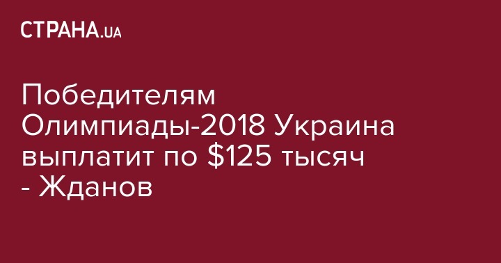 За первое место на зимней Олимпиаде-2018, который состоится в Южной Корее, Украина готова выплатить 125 000 долларов. Об этом на брифинге сообщил министр молодежи и спорта Игорь Жданов, передает УНН.