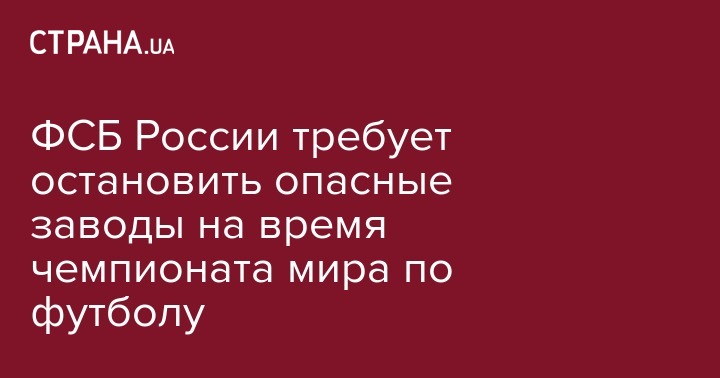 ФСБ России требует остановить опасные заводы на время чемпионата мира по футболу