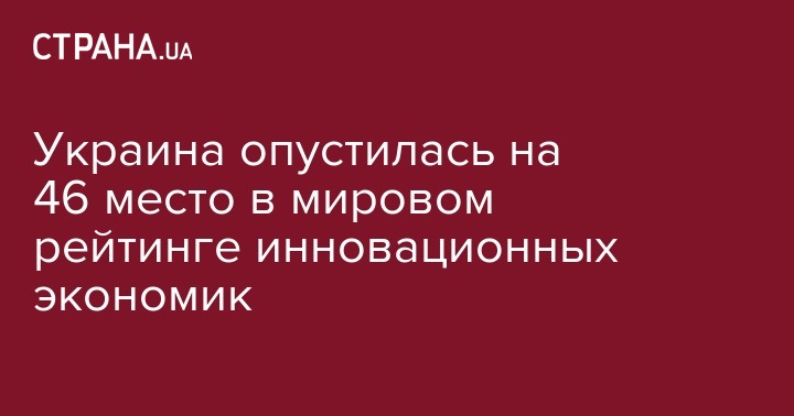 Украина в рейтинге инновационных экономик мира Innovation Index опустилась на 46 место из 50 исследуемых стран.