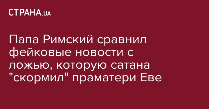 Папа Франциск сравнил распространение ложных новостей с библейской историей о дьяволе, который, притворившись змеей, убедил Еву съесть запретный плод. Он сказал, что сатана "скормил" Еве неправильную информацию.