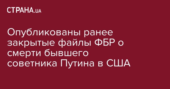 Опубликованы ранее закрытые файлы ФБР о смерти бывшего советника Путина в США