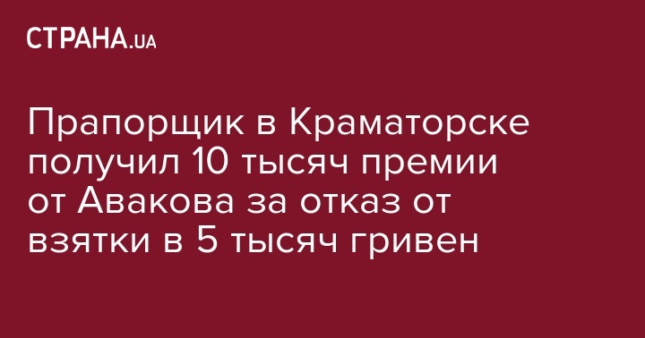 Глава МВД и председатель Госпогранслужбы наградили прапорщика приграничного Краматорского отряда Дмитрия Перендишиди за отказ от взятки в 5 тысяч гривен. Об этом сообщил спикер Госпогранслужбы Олег Слободян на странице в Facebook.