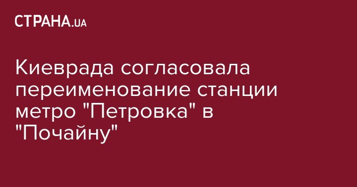 Комиссия Киевского городского совета по вопросам местного самоуправления согласовала проект решения, который предусматривает переименование станции метрополитена "Петровка" на "Почайна". Соответствующее решение было принято во время заседания 30 января, передает пресс-служба Киеврады.