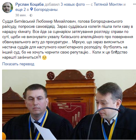 Сам Коцаба на своей странице в Facebook написал, что один из судей уже объявил о своем самоотводе и коллегия удалилась в совещательную комнату. Так что, возможно, дело вновь передадут в другой суд.