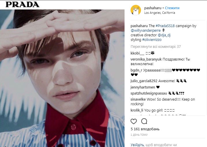 Перед этим осенью 2017 года модель принимала участие в показе Prada в Милане.