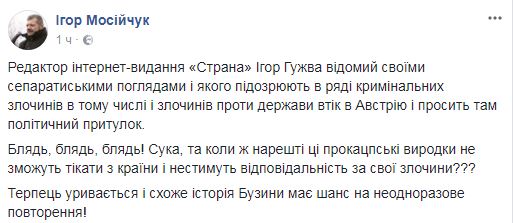 После отъезда главреда "Страны" в Австрию радикал Мосийчук призвал к убийствам