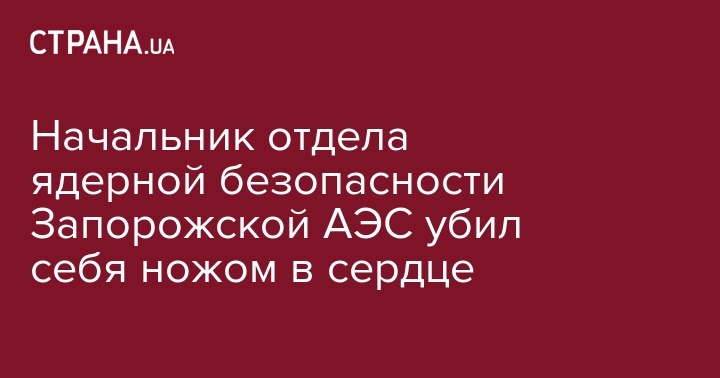 Начальник отдела ядерной безопасности Запорожской АЭС убил себя ножом в сердце