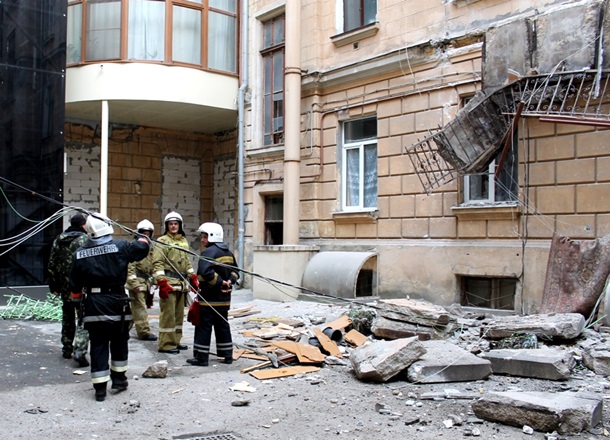Прибывшие спасатели установили, что обрушился балкон на третьем этаже во внутреннем дворе дома. Из-за этого под угрозой оказался и балкон на втором этаже, который обрушился частично.
