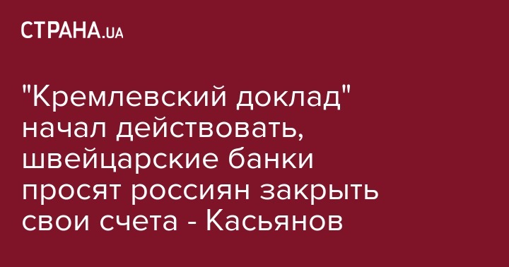 Несмотря на несанкционный характер "кремлевского доклада" США, некоторые его фигуранты уже якобы получают просьбы от иностранных банков закрыть у них свои счета, а кого-то даже попросили забрать сына из швейцарской школы.