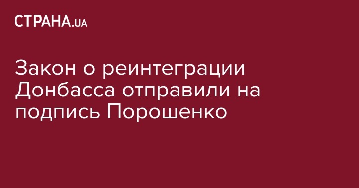 "Закон об особенностях государственной политики по обеспечению государственного суверенитета Украины над временно оккупированными территориями в Донецкой и Луганской областях направлен на подпись Президенту Украины Петру Порошенко", - говорится в сообщении о прохождении документа.