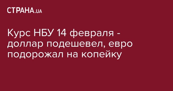 В среду, 14 февраля, Нацбанк установил официальный курс гривны по отношению к иностранным валютам. По сравнении с предыдущим рабочим днем, доллар подешевел, а евро поднялся на 1 копейку.