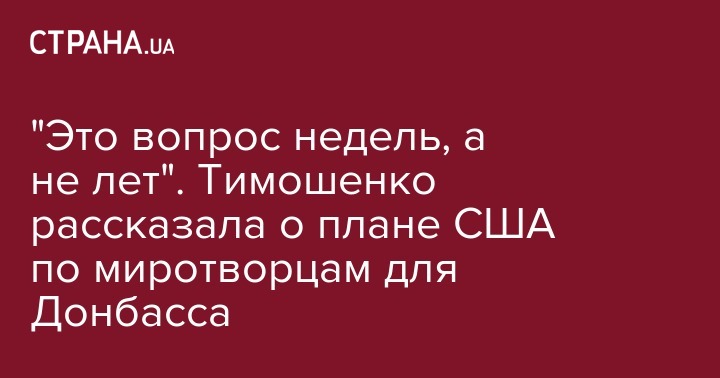 "Это вопрос недель, а не лет". Тимошенко рассказала о плане США по миротворцам для Донбасса