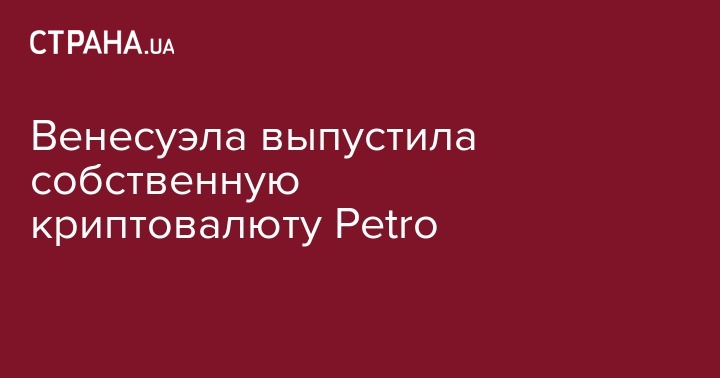 Венесуэла начала реализацию собственной криптовалюты Petro. Обращение валюты было запущено в полночь по местному времени.