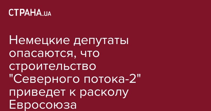 Немецкие депутаты опасаются, что строительство "Северного потока-2" приведет к расколу Евросоюза