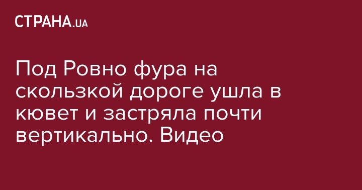 Под Ровно фура на скользкой дороге ушла в кювет и застряла почти вертикально. Видео
