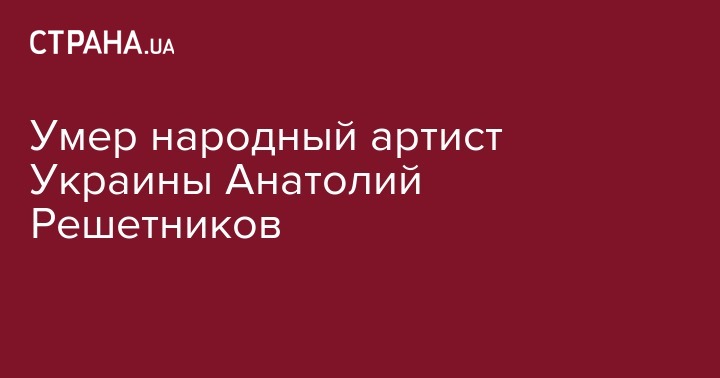 В Доме ветеранов сцены под Киевом умер актер, народный артист Украины Анатолий Решетников. Об этом сообщил журналист Олег Вергелис в Facebook.