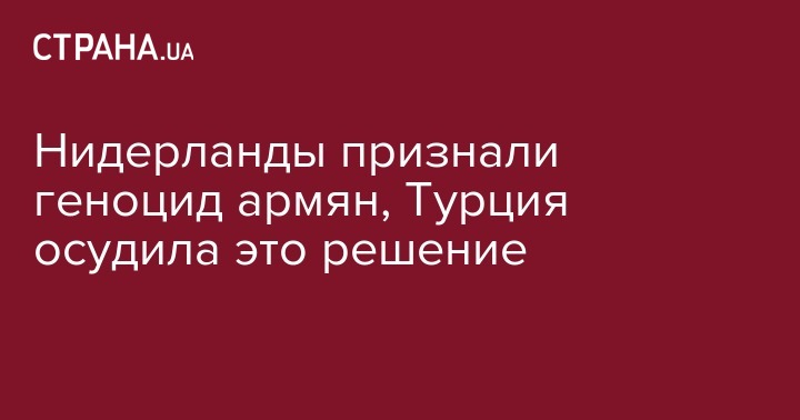 Нидерланды признали геноцид армян, Турция осудила это решение