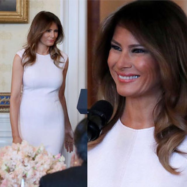 Мелания Трамп выступила в Белом доме в розовом платье и с пламенной речью