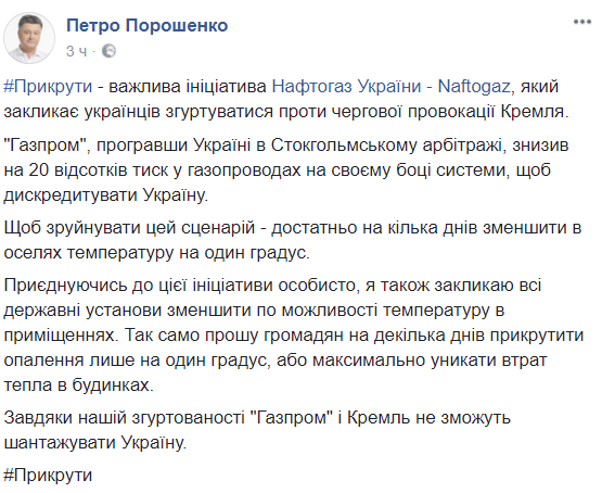"#Прикрути – важная инициатива "Нафтогаза", который призывает украинцев сплотиться против очередной провокации Кремля.