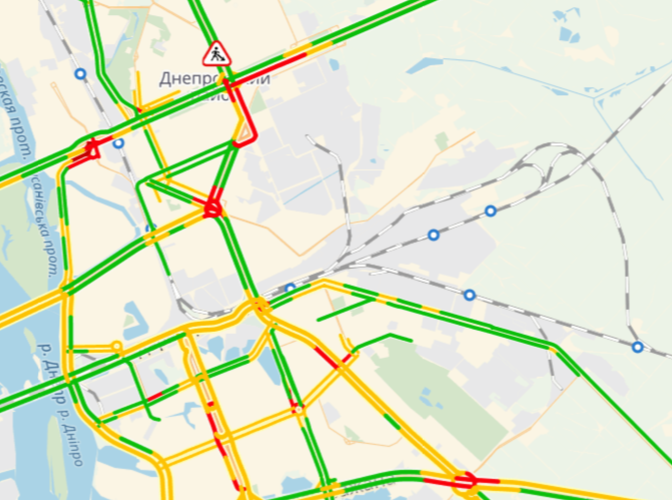 Также заторы наблюдаются на мосту Патона, Московском мосту, в районе Дарницкой площади.