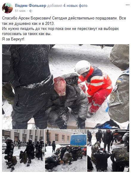 "Почему я двумя руками поддерживаю силовой разгон "михомайдана" в Киеве? Потому что собравшихся там действительно надо пи...дить. Их, и таких как они, и таких как я - очень сильно пи...дить. Чтобы, наконец, поняли - за кого мы проголосовали в 2014 году. И что люди, которые позволяют себе проливать кровь своего же народа - не имеют права называться людьми. Не то, что иметь какие-либо полномочия. Видимо, мало нас ещё били по голове, раз многие до сих пор этого не поняли", - сказал он.