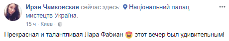 2 и 3 марта в Киеве состоялись два концерта знаменитой бельгийской певицы Лары Фабиан. При этом, запланированный на 4 марта концерт, был отменен.