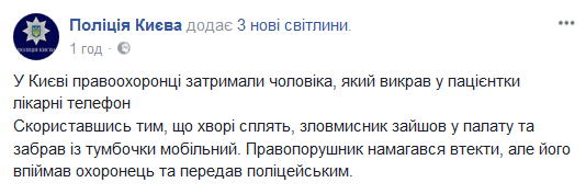 В Киеве правоохранители задержали мужчину, который похитил у пациентки больницы телефон.