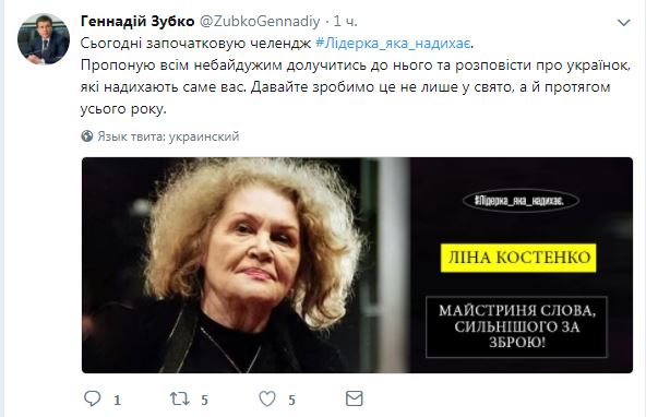 "Сегодня предлагаю челендж #Лідерка_яка_надихає", – написал он.